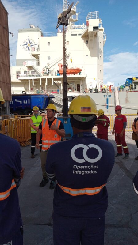 A ação contou com a participação do fisioterapeuta Marcos Sousa, da SAFEMED, em dois momentos, com os colaboradores na sede administrativa e com os Trabalhadores Portuários Avulsos (TPAs) no Porto do Itaqui.