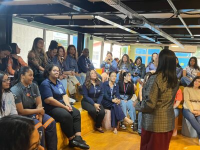 Encerrando a programação, a Roda de Conversa “Ser Mulher no Porto” proporcionou um momento emocionante de partilha e escuta. Em um ambiente de confiança e respeito, as participantes dividiram histórias de superação, conquistas e desafios vividos em suas trajetórias profissionais.