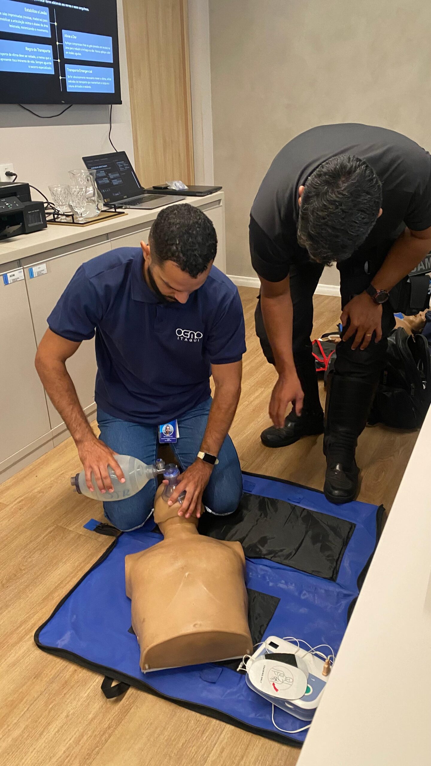 O treinamento foi conduzido pelo coordenador de treinamento do SAMU, Raynê Batista da Silva, com demonstrações de atendimentos básicos e uso de equipamentos fundamentais no salvamento de casos de parada cardiorrespiratória, acidentes de trânsito, além da técnica usada para desengasgo, reforçando a importância da agilidade e preparo em momentos críticos.